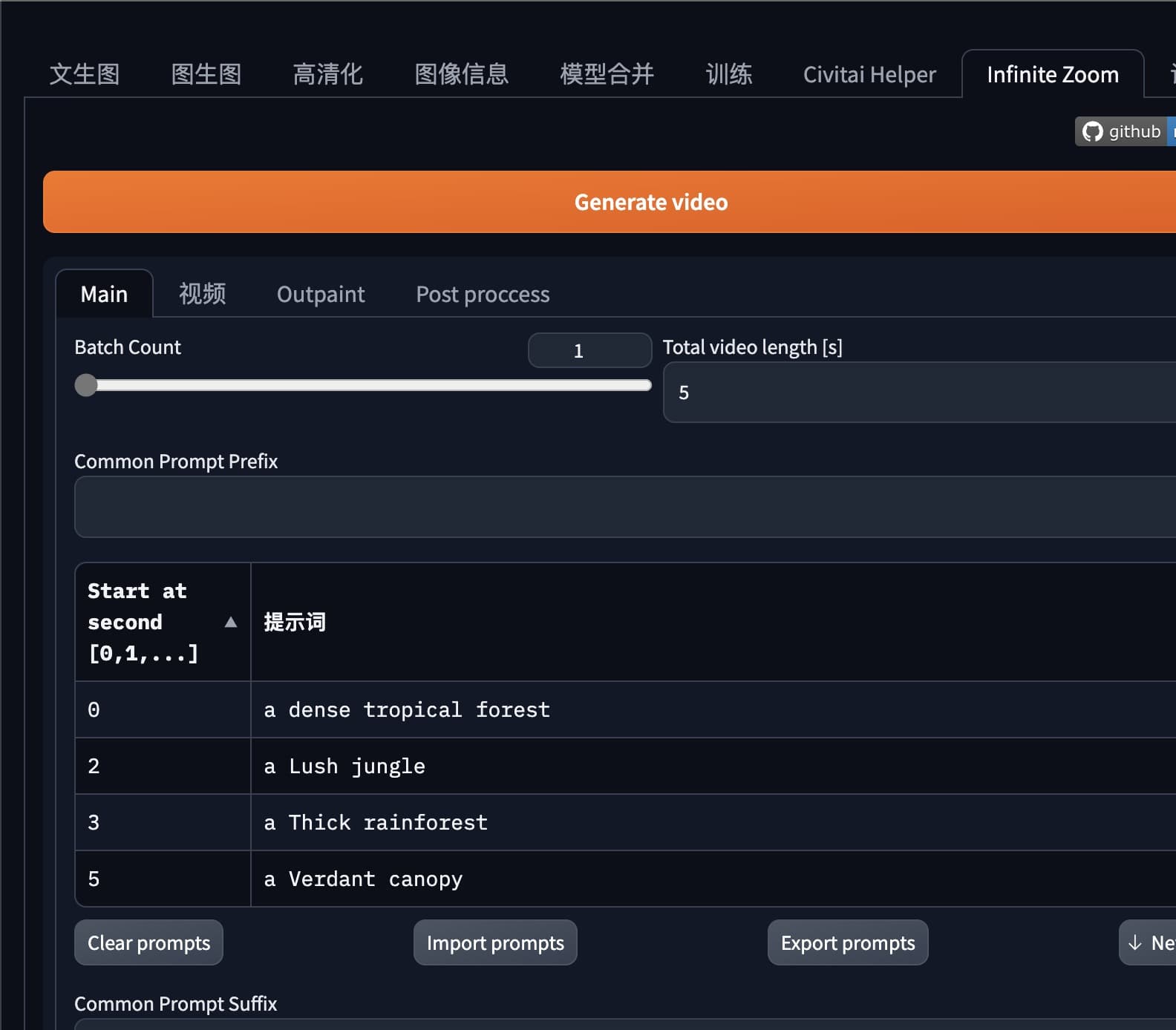 这是 AUTOMATIC1111(和 Vladmandic)的 webui 的扩展,允许用户使用稳定的扩散涂色方法创建无限缩放效果视频。