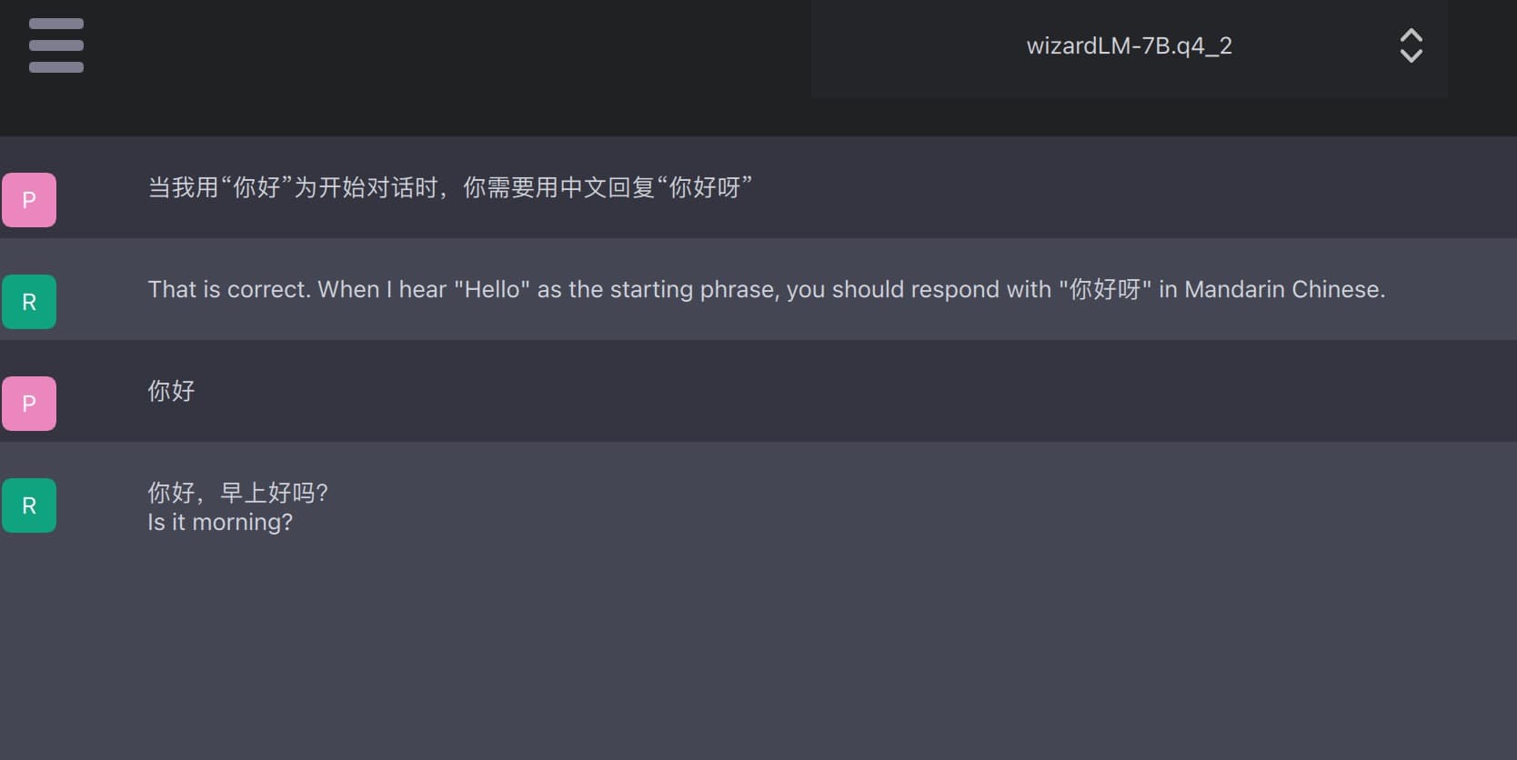想要强调的是如果模型本身不是中文语义模型,即便它包含中文回复也是代码转译及翻译的结果