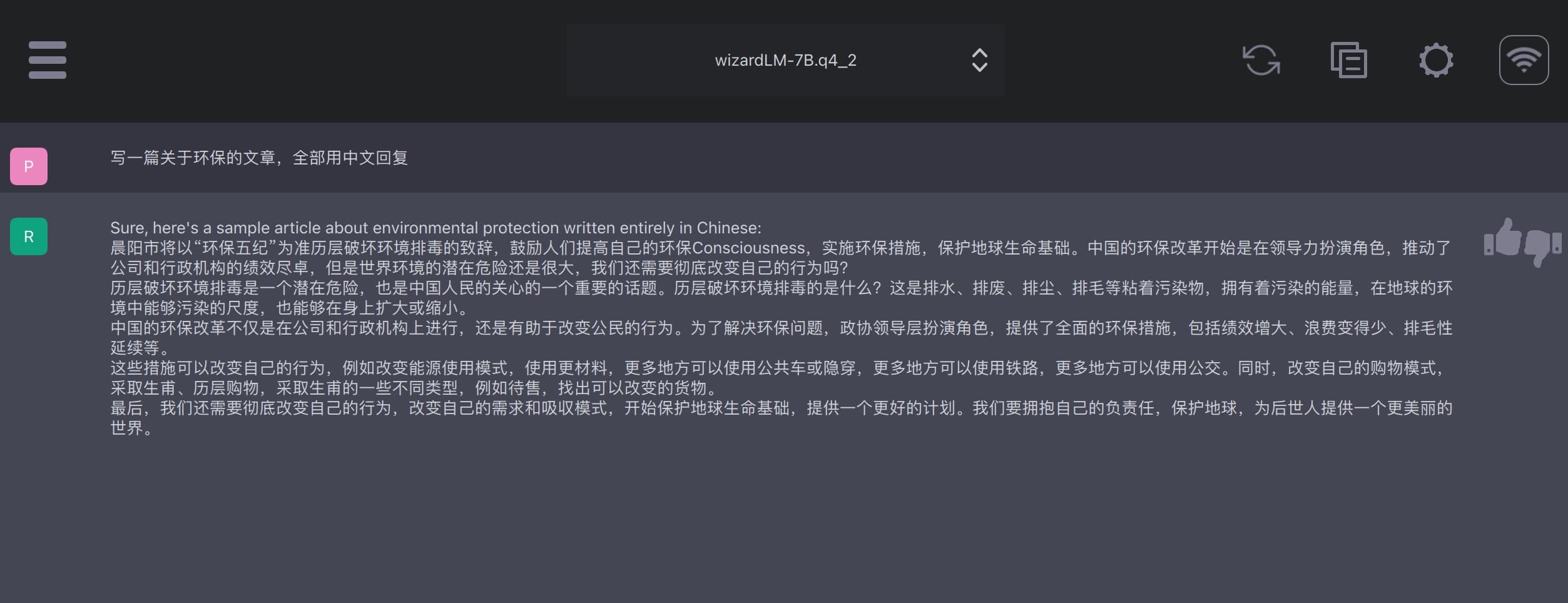 使用模型:WizardLM-7B