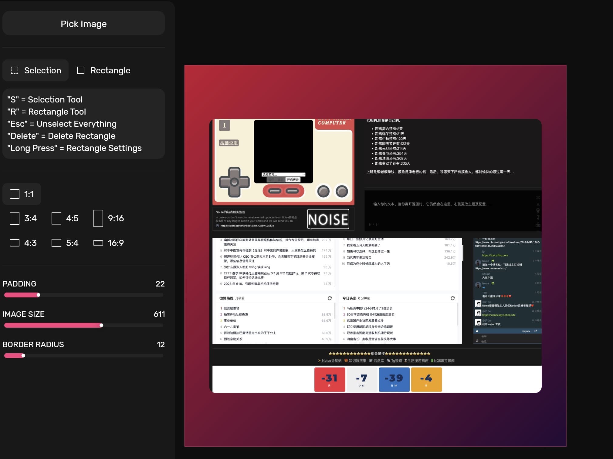 pinkpixel提供多种工具来满足一般截图美化需求